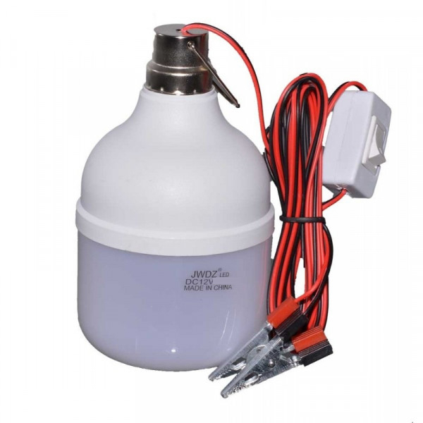 Bec LED 12W 12V, dispune de Cablu cu Clesti pentru alimentare la Bateria Auto. Becurile cu LED putere 12W au Glob Mat din Plastic cu lumina alb rece , sunt o solutie economica de iluminat cu un consum redus de energie.