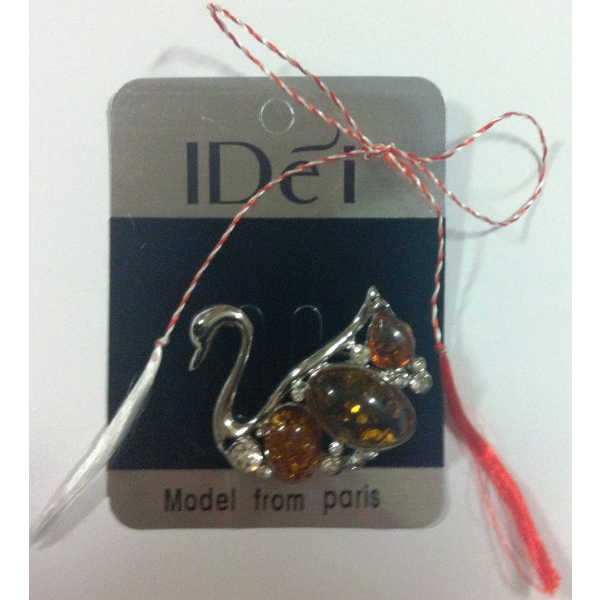 Martisor Brosa Lebada Argintie cu Strasuri si Pietre tip Chihlimbar XZ372Idee cadou de Martisor pentru 1 Martie, o brosa care va putea fi purtata oricand, cu orice ocazie. Usor de asortat.