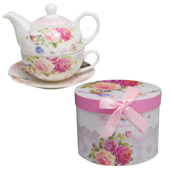 Ceainic Portelan cu Ceasca si Farfurie Premium in Cutie Cadou 350ml P317 DNB