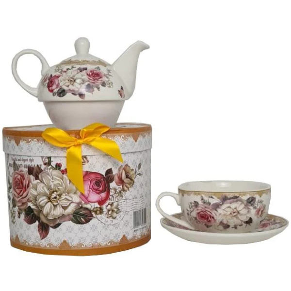 Ceainic Portelan cu Ceasca si Farfurie Premium in Cutie Cadou 350ml P446 DNB