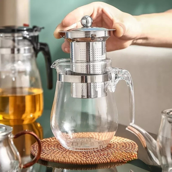 Ceainicul cu infuzor din sticlă și inox este alegerea perfectă pentru cei care apreciază un ceai preparat corect, având un design rafinat și o funcționalitate optimă pentru orice moment de relaxare.