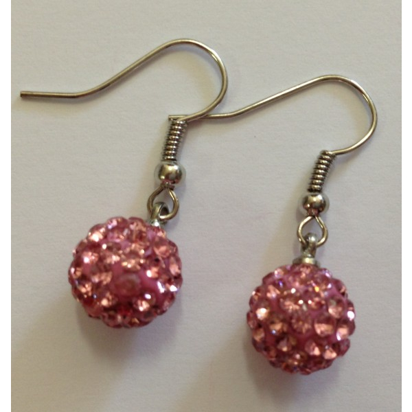 Detalii pentru produsul Cercei Shamballa cu Cristale Roz