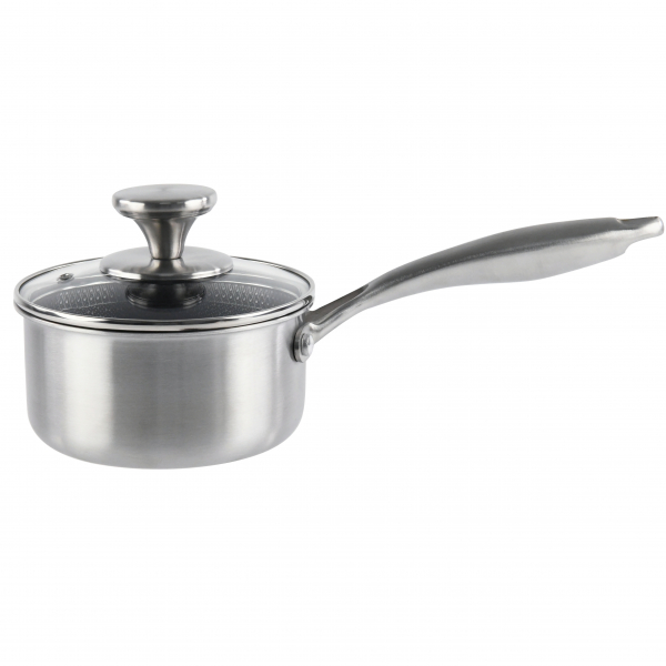 Cratita din inox, cu capac din sticla, invelis anti-aderent honeycomb, compatibila plita cu inductie, 14 cm, 0.95 l, Grunberg GR9714