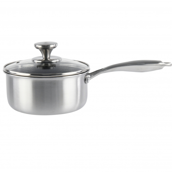 Cratita din inox, cu capac din sticla, invelis anti-aderent honeycomb, compatibila plita cu inductie, 16 cm, 1.50 l, Grunberg GR9716