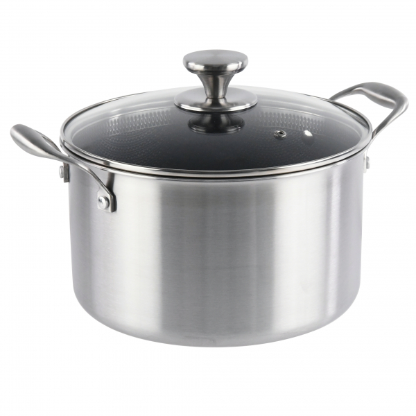 Detalii pentru produsul Cratita Inox capac sticla invelis honeycomb 26cm 7.20L Grunberg GR9526