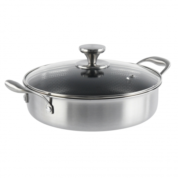 Cratita joasa, din inox, cu capac din sticla, invelis anti-aderent honeycomb, compatibila plita cu inductie, 26 cm, 3.00 l, Grunberg GR9626