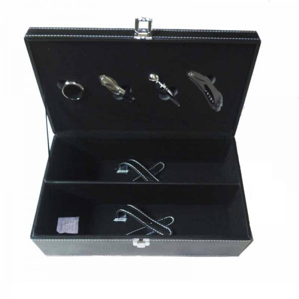 Detalii pentru produsul Cutie Cadou din Piele Pentru 2 Sticle Vin cu 4 Accesorii
