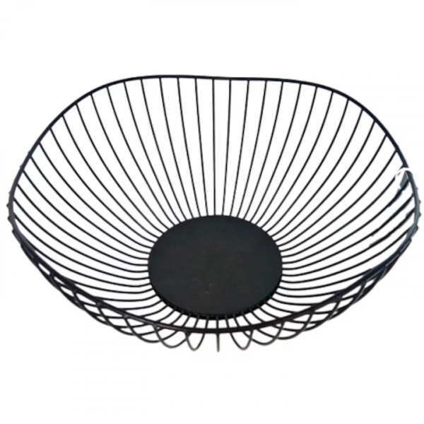 Fructiera metalica 27x27x12 cm, Negru, este o alegere excelenta pentru oricine doreste sa combine functionalitatea cu estetica intr-un singur produs. Datorita materialului rezistent, designului simplu si elegant, dar si culorii neutre care se potriveste in orice decor, aceasta fructiera reprezinta atat o solutie practica de depozitare, cat si un element decorativ rafinat.