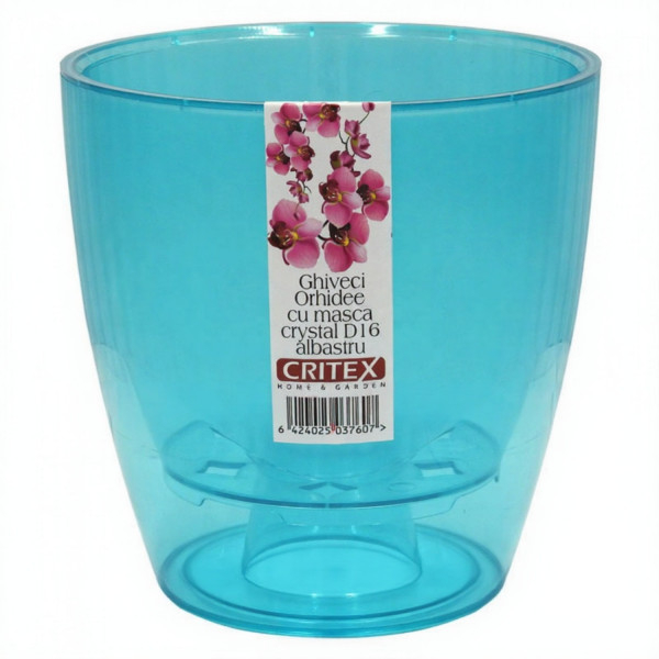 Ghiveci pentru orhidee cu masca Auto irigare, plastic tip cristal, dimensiuni 16cm