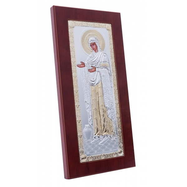 Dimensiuni icoana placata cu argint: ~24.5 x 31.5 cm.