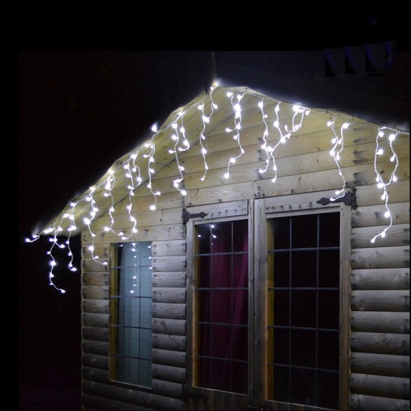 Instalatii Luminoase de Craciun cu Franjuri Inegali 25m 500 LED-uri, Protectie Exterior IP44, Fir Alb, Prelungibila in Serie, cu joc de lumina tip Flash. Aceste instalatii de Craciun sunt ideale pentru decorarea casei dumneavoastra, pozitionate sub acoperis, la streasina.