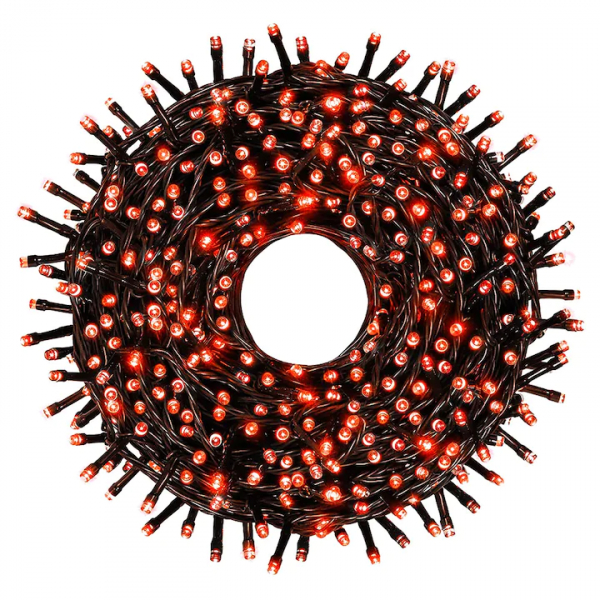 Instalatii Luminoase pentru Craciun Snur, 16m 200LED cu Jocuri de lumina rosie, Fir Negru, instalatia NU ESTE prelungibila.
