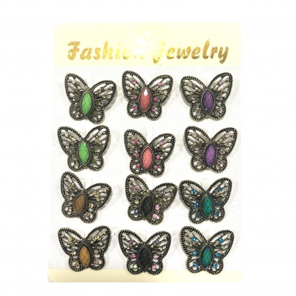 Set 12 Martisoare tip Brosa Fluturi Aurii cu Pietre si Cristale in Diverse Culori, ideale pentru 1 Martie, pentru Femei, colege, mame, sefa, sora, verisoara,cadouri martisor.
