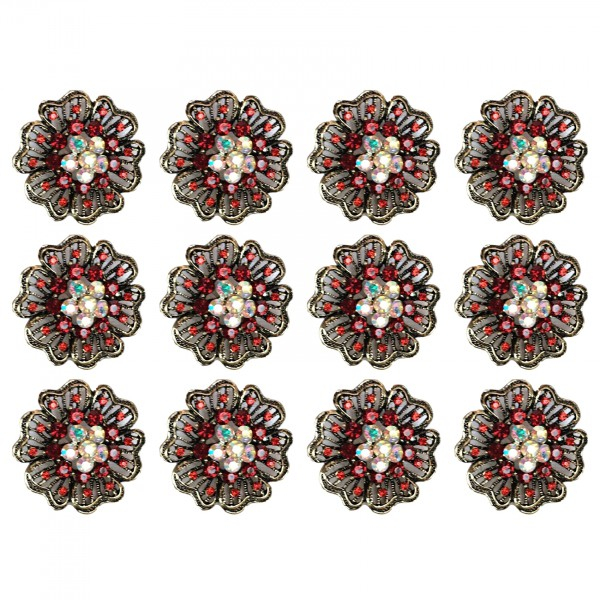 Detalii pentru produsul Martisoare 1 Martie Set 12 Brose tip Floare cu Cristale Rosii
