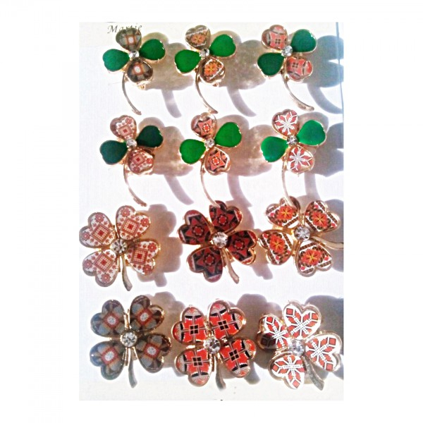 Set 12 Martisoare tip Brosa Trifoi cu Model Traditional Popular, ideale pentru 1 Martie, pentru Femei, colege, mame, sefa, sora, verisoara, etc.