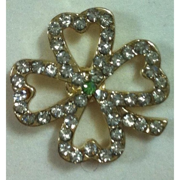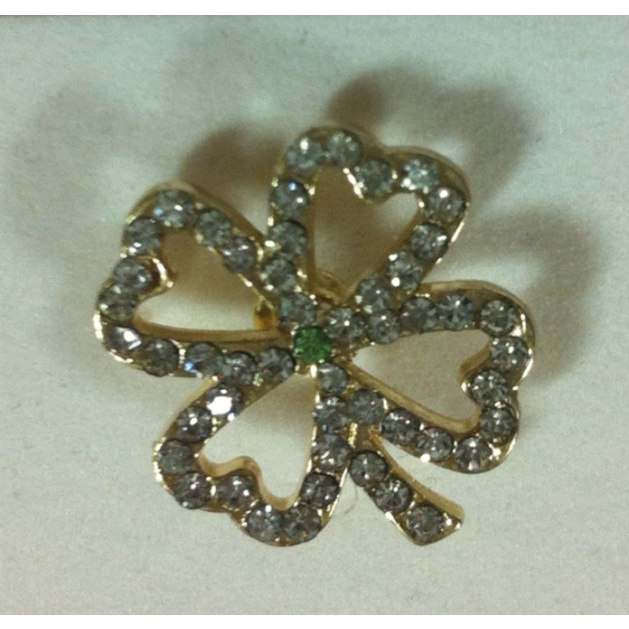 Martisor Brosa Aurie Trifoi cu 4 Foi si Strasuri XZ56
