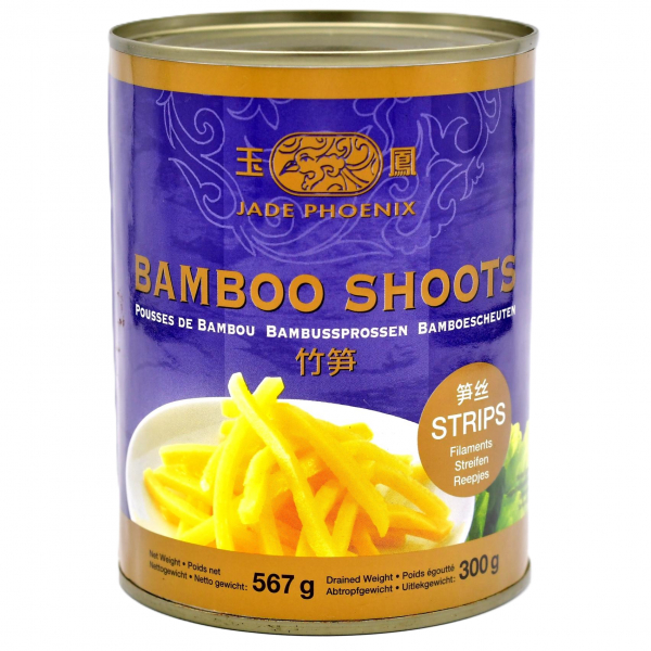 Mugurii de bambus tăiați în fâșii subțiri Jade Phoenix, conservați în apă, sunt un ingredient clasic în bucătăria asiatică, ideal pentru rețete rapide și gustoase. Tăiați uniform și subțire, acești muguri oferă o textură crocantă plăcută, absorb cu ușurință aromele sosurilor și se integrează perfect în preparate cu tăiței, supe, wok-uri și salate.