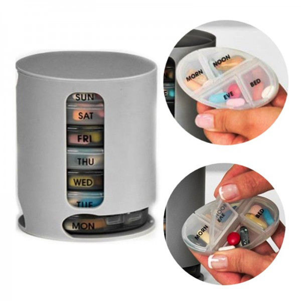 Organizator Medicamente, suplimente, vitamine, etc. cu 7 sertare, marcate cu zielele saptamanii si impartite in cate 4 comparimente/zi, Pill Pro, perfect pentru oricine vrea sa aiba pastilele la indemana, atunci cand este plecat la drum si este necesar sa aiba un program definit in administrarea pastilelor.