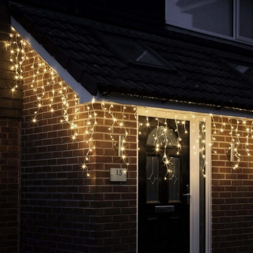 Instalatii Luminoase de Craciun cu Franjuri Inegali 8x0.2x0.4x0.6x0.8x1m 242LED-uri Alb Cald 9122 , Protectie Exterior IP44, Fir Alb, Prelungibila in Serie, cu Joc Flash. Aceste instalatii de Craciun tip turturi luminosi sunt ideale pentru decorarea casei dumneavoastra, pozitionate sub acoperis, la streasina.