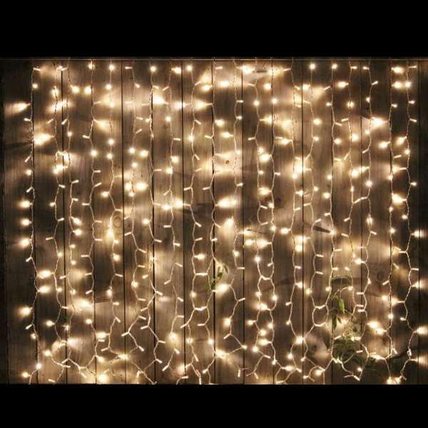 Instalatii Luminoase, Perdele de Craciun Luminoase, cu dimensiunile 8x1m, 360LEDuri cu lumina Alb Cald, Fir Alb, protectie Exterior IP44, Joc Flash, Prelungibila, CL.