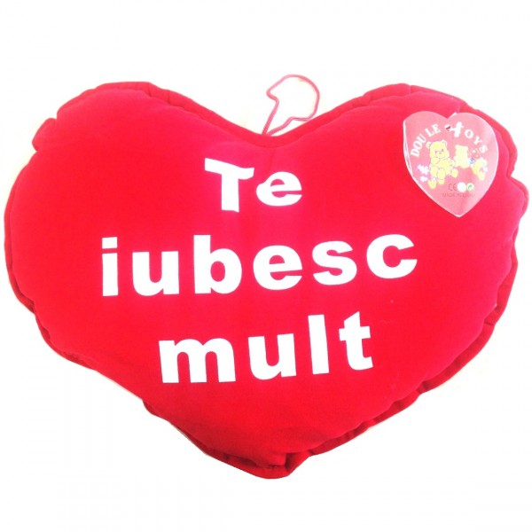 Cadou pentru Indragostiti, ideal pentru Aniversari, de Valentine's Day si Dragobete : Perna Inima Rosie cu mesajul Te Iubesc Mult. Cel mai frumos mesaj pentru iubitul sau iubita ta!