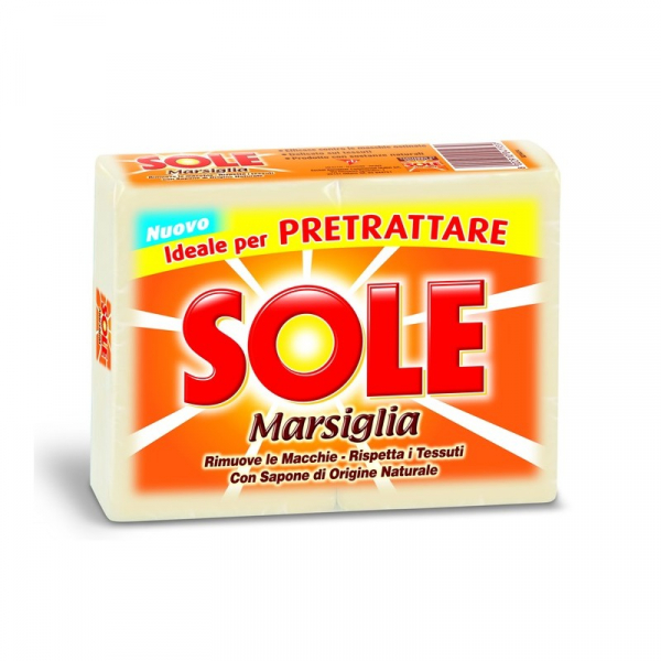Proprietati: Sapun solid pentru rufe Marsiglia Sole. Eficient contra petelor persistente. Delicat cu tesaturile. Produs cu substante naturale.