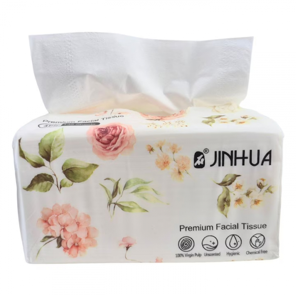 Descopera Jinhua Premium Facial Tissues, servetele faciale de inalta calitate, realizate din 100% celuloza virgina, fara inalbitori artificiali si fara clor elementar.