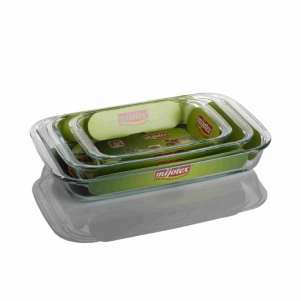 Set 3 vase yena MIJOTEX PL 5 dreptunghiulare din sticla termorezistenta transparenta 2.2L+1.6L+0.7L DNC54069