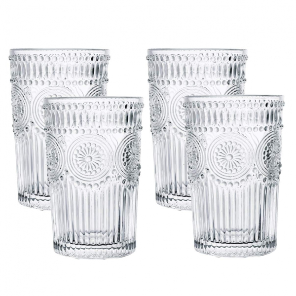 Set 4 Pahare Apa Limonada 300ml din Sticla incolora transparenta, pentru servit: Long drinks, limonada, suc, apa, frappe. Ideale pentru baruri, terase, hoteluri, restaurante sau chiar pentru o petrecere data in propria dumneavoastra casa.