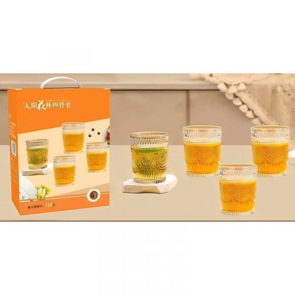 Pretul este pentru un set de 4 pahare din sticla pentru bauturi.