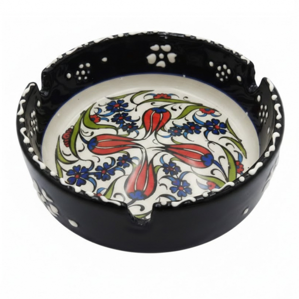 Realizată din ceramică și pictată cu grijă folosind tehnici tradiționale fiecare scrumieră este perfectă pentru utilizare zilnică sau ca element decorativ. Detaliile fine și culorile vibrante adaugă un farmec distinctiv, transformând fiecare scrumieră într-o reală piesă de admirat în orice încăpere.