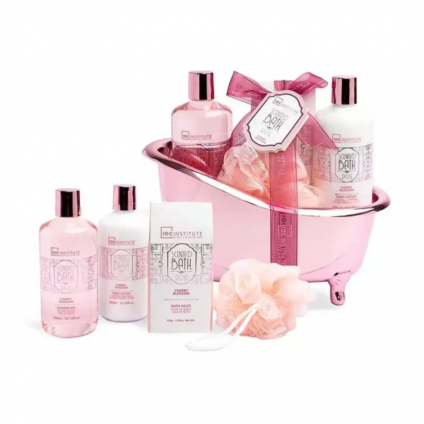 IDC Institute Bronze Bath Tube Set Cherry Blossom Set Îngrijire pentru Curățare corp 5buc
